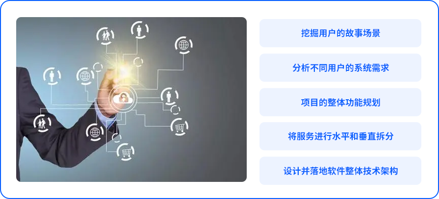 用户需求挖掘与分析、业务过程拆解、商业模式分析、信息化方案编制、业务架构设计