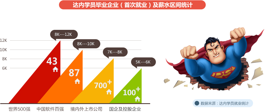 达内目前拥有7万多家雇主合作企业,具备深度合作的雇主企业达6224家,是目前行业内拥有就业合作雇主企业最多的品牌;