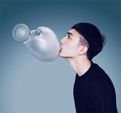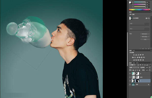 12、先用变形工具确定好每个部分的基本位置,降低头部饱和度,在蒙版上用画笔工具将头部与气泡进一步融合。