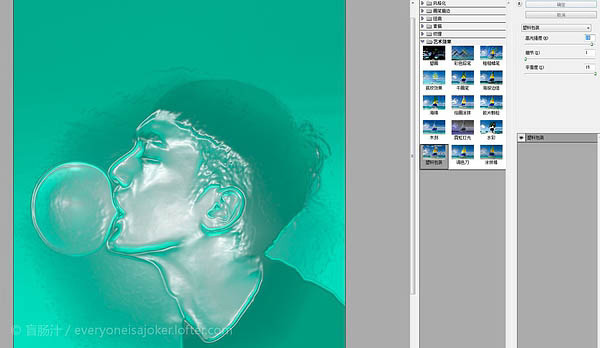 5、滤镜----滤镜库----艺术效果----塑料包装。高光强度与平滑度增加,细节降低。