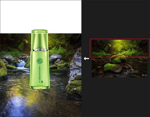 3、找一张平视中景的森林放入画面中间,添加蒙版用画笔衔接一下。