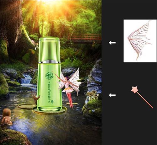 6、一些辅助的小元素都抠出来放入画面中,调整好位置,衔接要自然。
