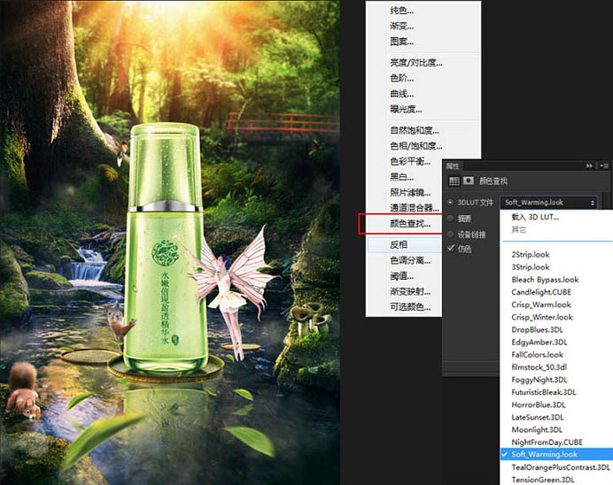 3、再给整个画面统一调色,用到了颜色查找这个功能,一个快捷调色的功能。