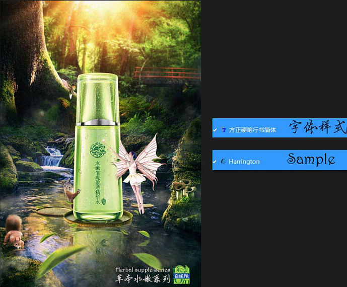 4、加入文案和LOGO调整好字体大小和位置,选两个合适的字体。