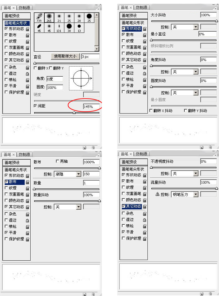 30、把前景色设置为白色,选择画笔工具,按F5调出画笔预设面板,参数设置如图