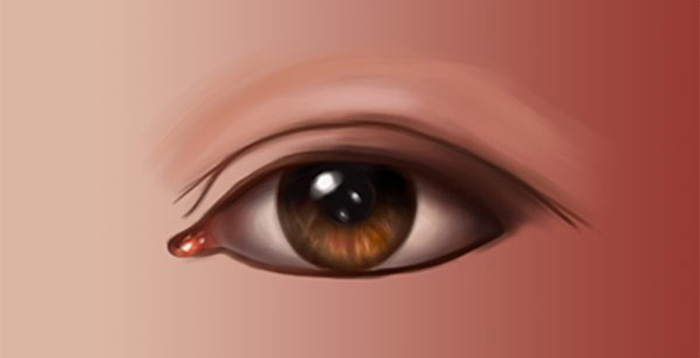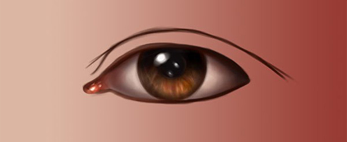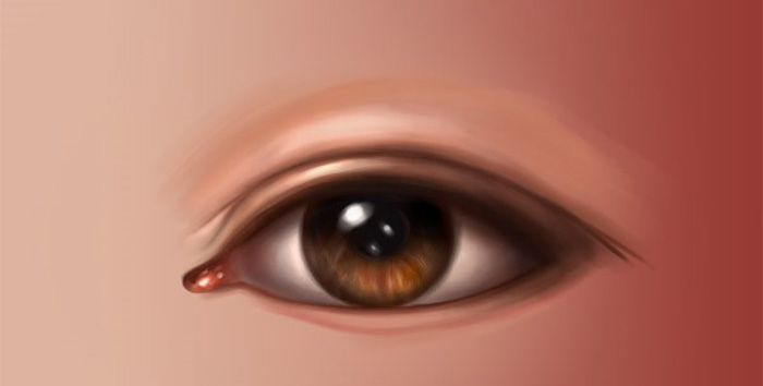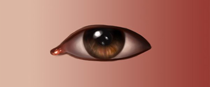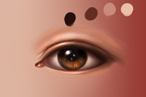 我们要再精修一下粗糙的下眼睑。这一步主要使用的颜色包括:#260f0b,#642e22,#c88a7c和#eac0a9。建议将四种颜色涂在画布上(最好新建图层),这样能用吸管(I)工具取色,很方便。让我们先在下眼睑右侧用#260f0b轻描,然后再在小褶皱处使用#eac0a9增加一点高光。