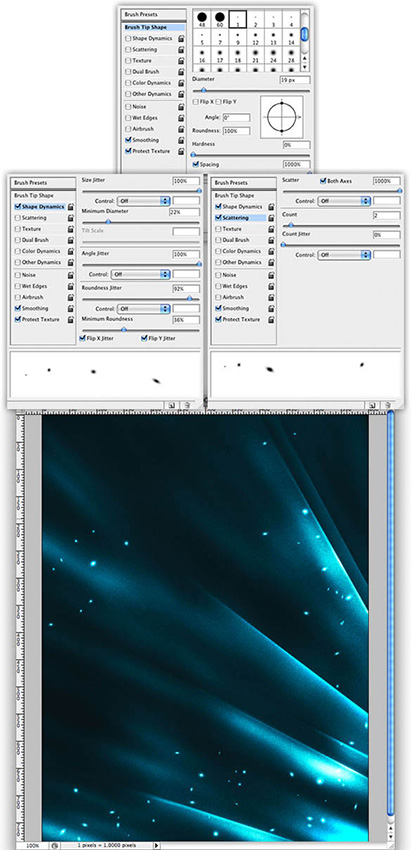 PS干货教程2016-02-1514、在“灯”组中新建一个图层。选择画笔工具(B),按F5调出画笔预设,调整笔刷的设置。之后,在图像上画一些火花。