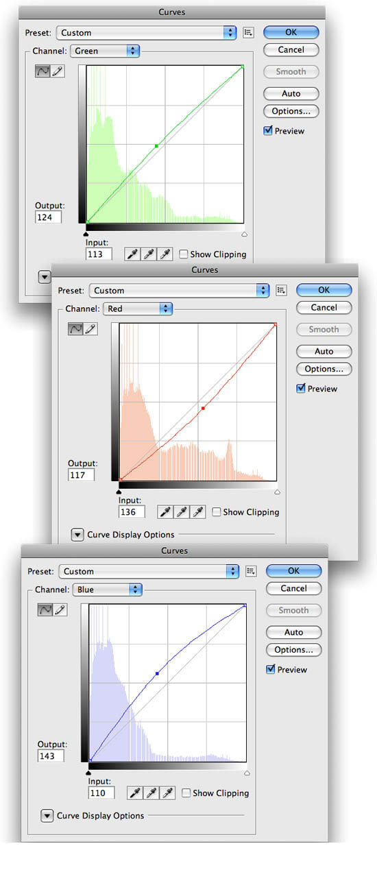 18、在这里,我们将增加一点绿色和蓝色的图像。点击图像>调整>曲线和下面的图像。