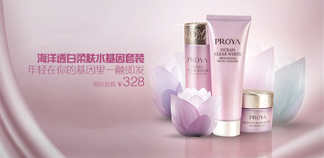 7、把产品图片拖进来,并用色相饱和度工具,单独对背景图层调色,调成和化妆品同一个色系,色相参数为-31。
