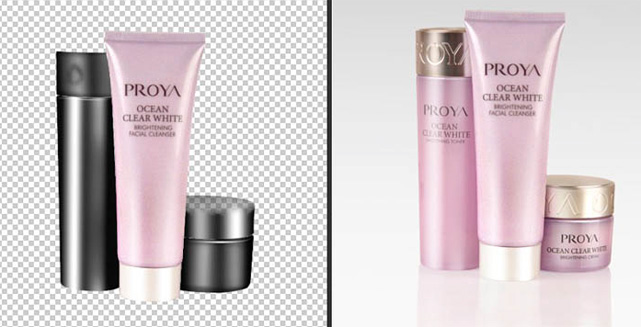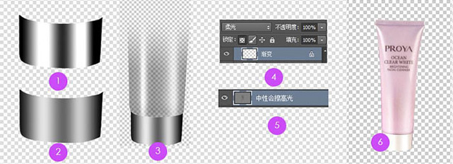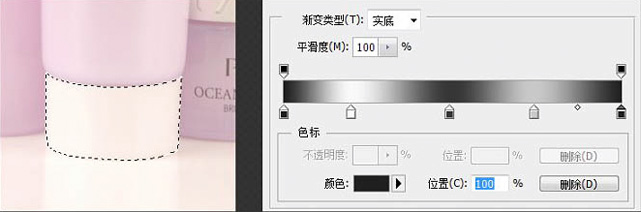 5、用上面的方法,对化妆品每个层单独抠出来,用黑白渐变,结合加深减淡工具处理细节。