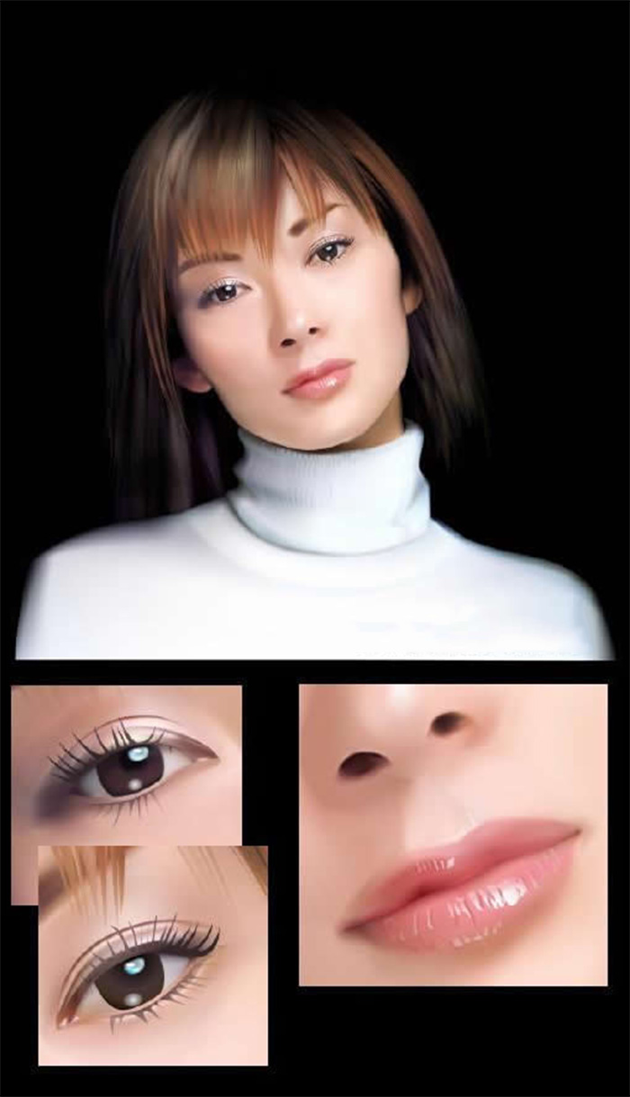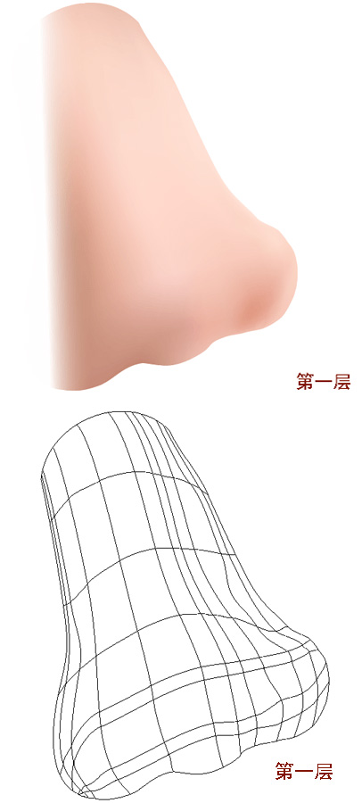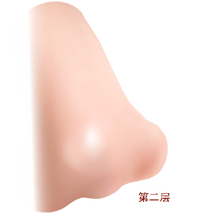 五官的画法主要一个特点就是采用透明渐变的做法,这样过渡平滑且真是(这就 要求脸部整体的结构要完成的比较好)鼻子:先画出鼻子的大体,边缘的颜色要取脸部同样位置的颜色保证过渡均匀.( 我这里左边的采用透明过渡)