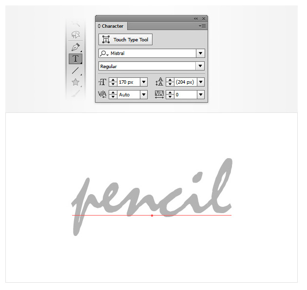 字体为Mistral,大小设置为170pt(或者按照自己所画的图案设置)。打开图层面板,并将文字选中锁定,避免后面为它添加笔刷效果时意外移动。