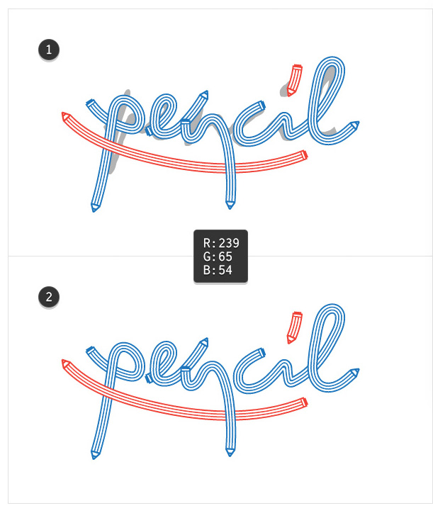 使用相同的工具和笔刷画出红色的图案路径,颜色为 R=239 G=65 B=54. 最后画完剩下的图案,做完之后就可以将之前锁定的图层解锁并隐藏或删除了。