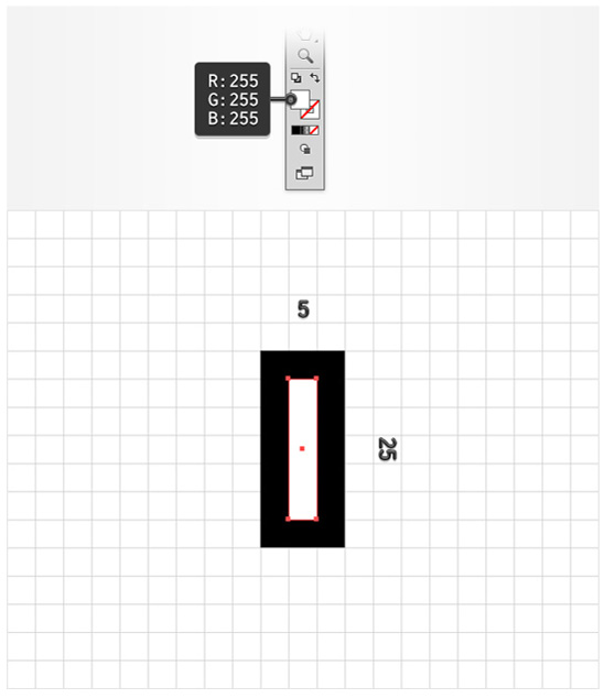将填充色设为白色(R = 255 G = 255,B = 255)。创建一个5×25像素的矩形,位置如下图所示。