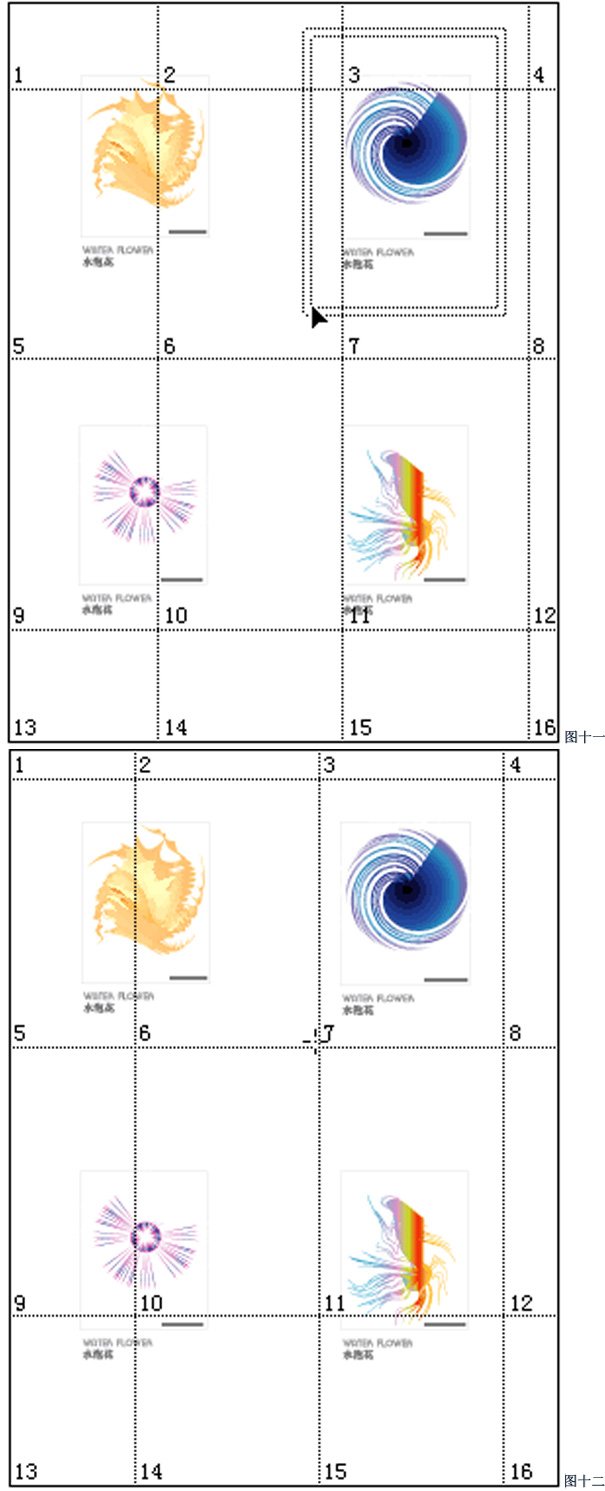 再次选择 页面工具(page tool),在画板中拖拽它(图十一),确定后,页面拼贴分割被改变了(图十二)。
