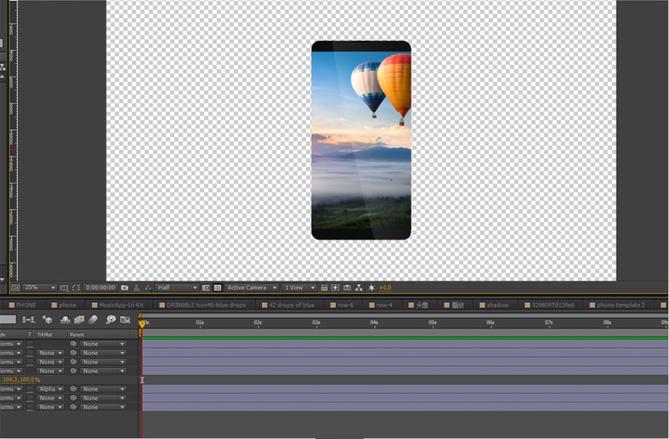 这里的风景图的初始位置稍微再调一下,把风景图的X轴位置调节一下(注意不要动screen图层):