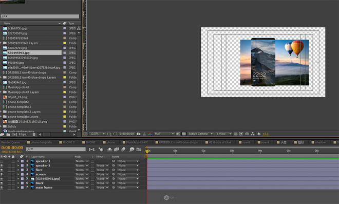 (你需要点进最外层的合成,然后找到PHONE的合成,点进去才能找到)