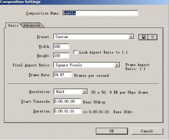 步骤1、运行After Effect 6.5,选择主菜单Composition->New Composition命令,设置参数如图1所示。