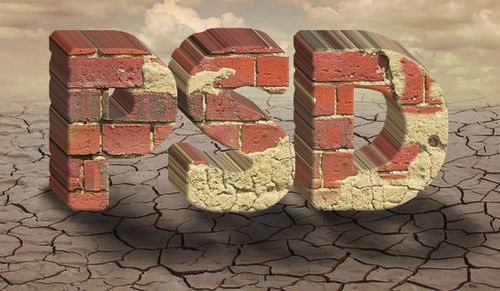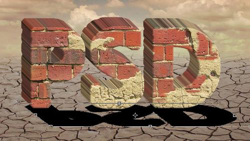 为文字添加阴影:将砖文字图层复制一层,栅格化并删除图层样式,按Ctrl点击图层缩略图,建立选区,黑色填充后取消选区作为阴影层,将阴影层托到砖文字层下方,Ctrl+T调整透视角度。