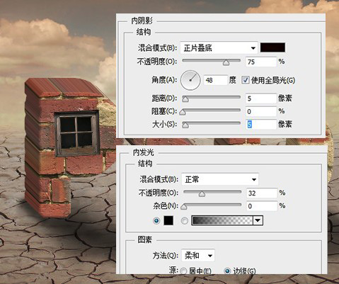 为图层添加内阴影与内发光,使窗口的看起来更加逼真。