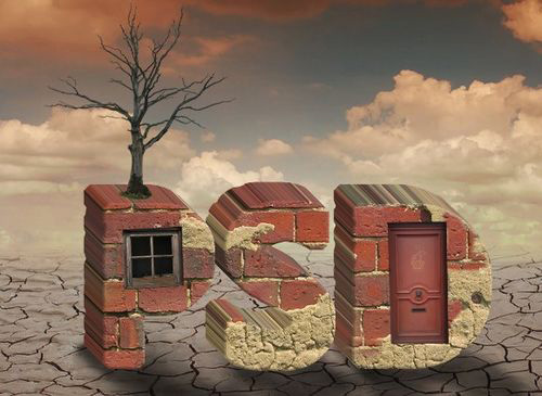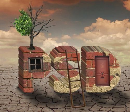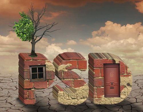 在字母P上添加一颗枯树(素材),以营造超现实的场景。