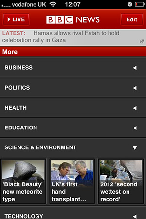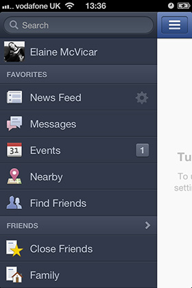 有的应用和网站采用可滑动的侧边菜单。比如Facebook的应用。和扩展菜单一样,一般需要点击一个有几行横线的图标或者滑动屏幕,然后就可扩展出或滑过菜单,并在屏幕侧面垂直显示一系列菜单项。侧边菜单可以包含分类并且可以滚动。