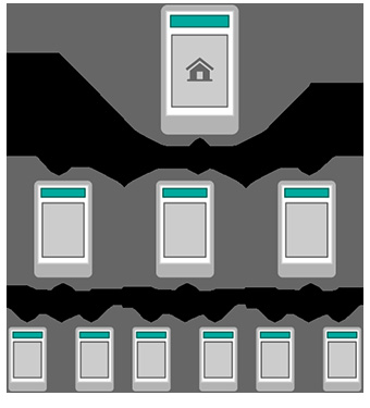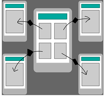 轴辐式结构可让用户通过中央索引向外导航。这是iPhone默认采用的模式。用户不能在各个“辐条”之间进行导航切换,只能先回到轴心再出去。这个方式在历史上一直用于工作流程存在限制(通常是表单或购买流程等技术限制)的台式机情况,但其现在也开始逐渐流行到了移动端,因为在移动端用户往往需要专注于单项任务,另外设备的形状因素也造成全局导航使用比较不便。