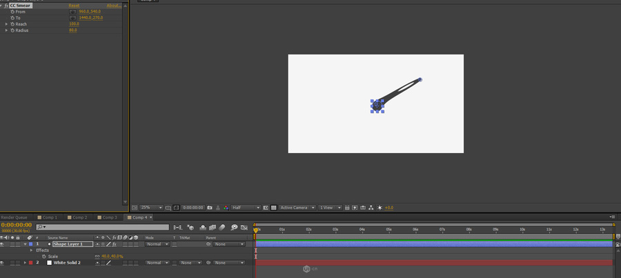 对形状图层添加CC smear效果,中文应该叫cc 涂抹?在扭曲的效果栏中