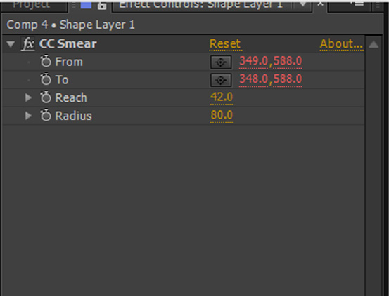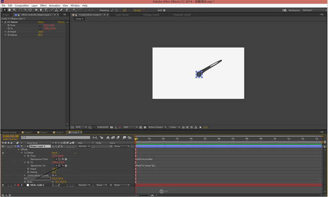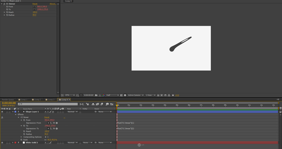 添加简单的表达式绑定,方法是:按住art键,左键点击CC smear的from和to,并且在图层找到表达式界面