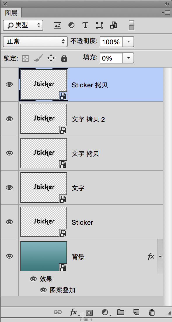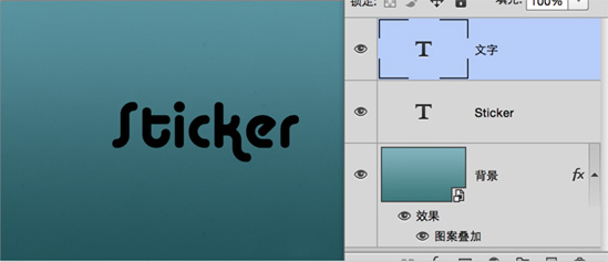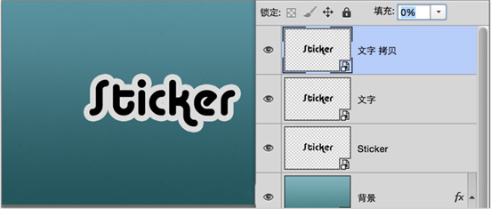 复制“文字 拷贝”图层和“Sticker”图层,并将“Sticker 拷贝”层填充色改为0 置于顶层