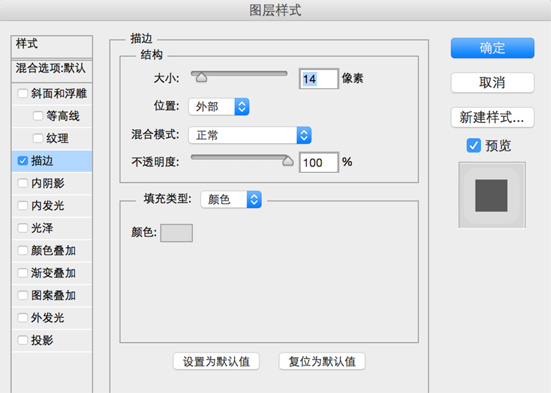描边大小:14