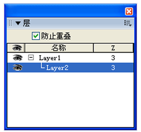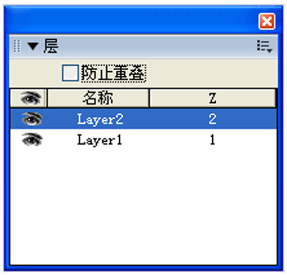 层面板上面还有一个参数就是防止层重叠。一旦选中,页面中层就无法重叠了。