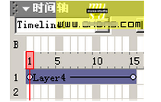 2.这时,我们点击ALT + F9 打开时间轴面板,DW已经为我们添加了默认的时间轴Timeline1,然后,我们选中我们要滑动的图层layer4,在上面点击右键,选择 [添加到时间轴] 这时我们可以在时间轴面板中看到我们刚刚制定的图层layer4,这说明,我们已经添加成功了!