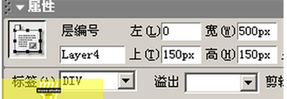 5. 然后再将光标置入图层layer1,点击菜单 [插入——层] 再插入一个长500高130的图层layer2;并将layer2的属性中左边距和上边距都设置为0,并为它指定一个你喜欢的背景色。