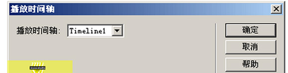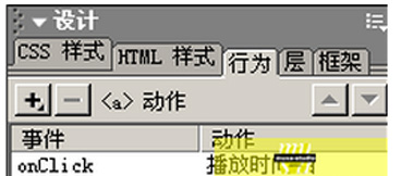 5.我们先设置激活滑动图层的动作。选择上展开这个按钮,转到行为面板,点击在出来的菜单中选择 [时间轴——播放时间轴] DW会弹出一个窗体,在上面的下拉菜单中选择timeline1。