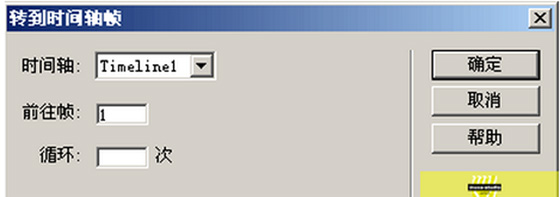 重复刚才的步骤5,选择上展开按钮,添加动作 [时间轴——转到时间轴桢] ,在跳出的窗体中的下拉菜单选择timeline1,桢数添上1。