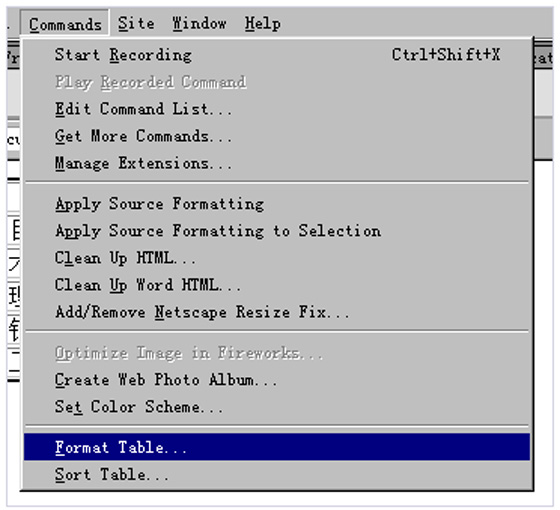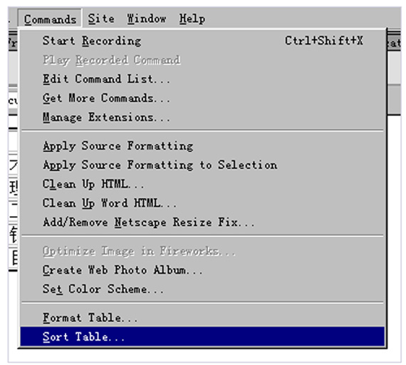 3、(1)虽然表格是做出来了,不过有时我们需要对表格中的数据进行排序,这DW当然也想到了,先选中表格,然后选择菜单栏commands/sort table。
