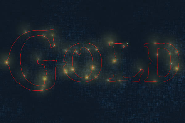 步骤10这是本教程中最有趣的一部分,现在让两个文本图层显现。将所有的”光点”图层组贴附在字体的周围,多复制一些(我复制了33组),可以看看一阿土,这是我摆放的位置,你也可以酌情排布。