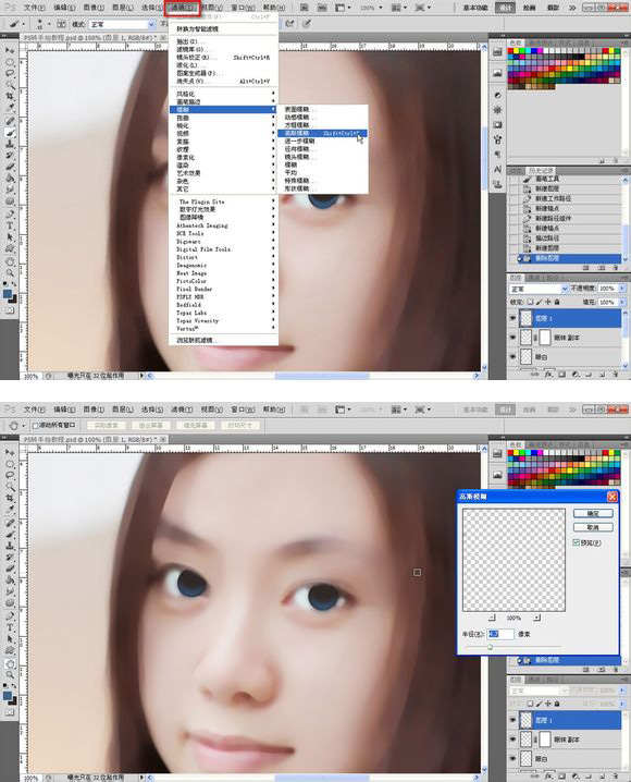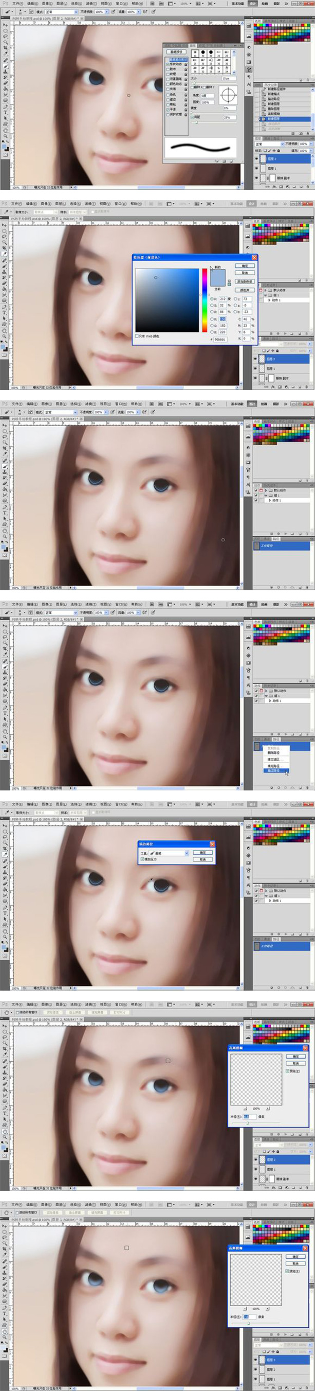 12、重复之前的步骤,降低画笔的数值,颜色由深变浅,高斯模糊,一共做3次,如图所示。