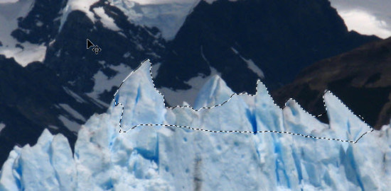 14、我们还可以添加一些额外的纹理,比如说用快速选择工具选择冰山顶峰图像,如下。