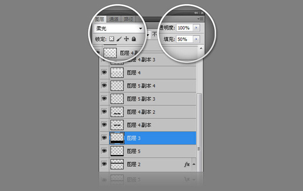 ★只需要明白三个关键词:叠加、柔光和透明度(填充)。
