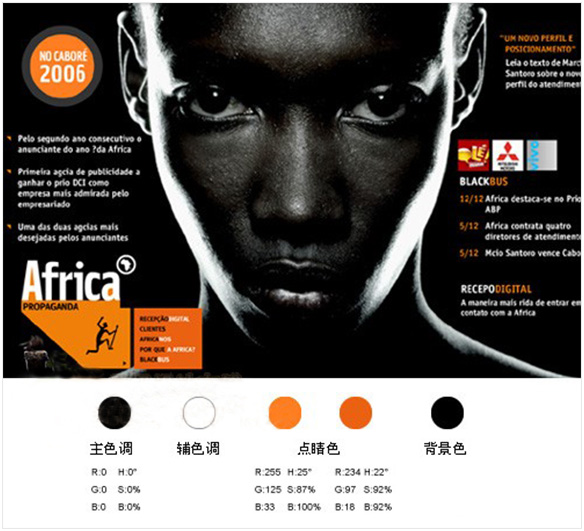 橙色在黑色的背景上显得很鲜亮,它的特性得到了最大化的发挥。