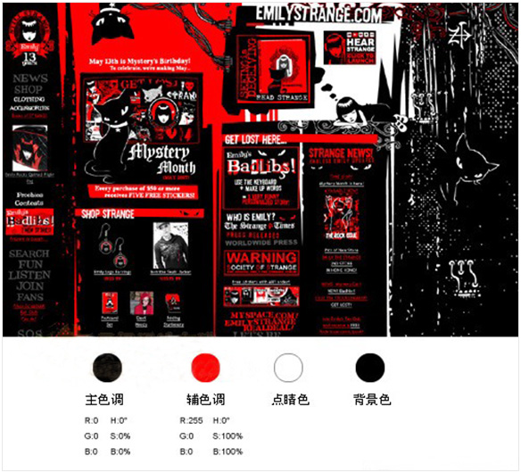 红黑这两种配色也被广泛的运用于较能体现个性的时尚类网站,让人印象强烈的深刻。