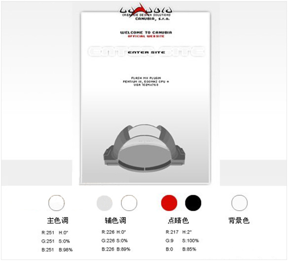 主色调及背景色是接近于明度白色且非常浅的灰调,辅色调的灰调子明度上较主色调稍深些,另一辅色调为白色。