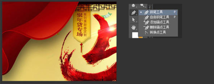1、新建大小自定的画布,新建图层开始画帷幕。用钢笔工具抠外形,填充色块、渐变和阴影。