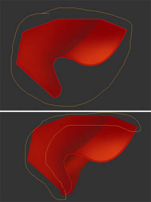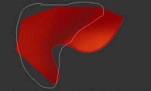 4、新建一个图层,继续剪切到下面的图层1上,用钢笔勾出褶皱的部分,大小和白线图所画,用画笔在新建图层上用黑色画笔填充黑色。