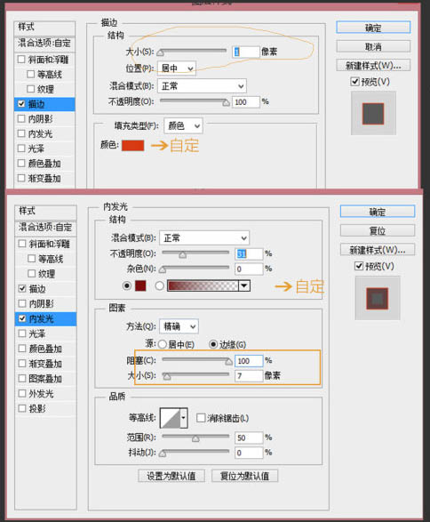 6、去掉不要的地方描边效果,右键点击图层1的这个图标,选择“创建图层”,然后左边的两个图层样式会变成两个图层,然后在各自的图层上添加蒙版,擦掉不要的地方。