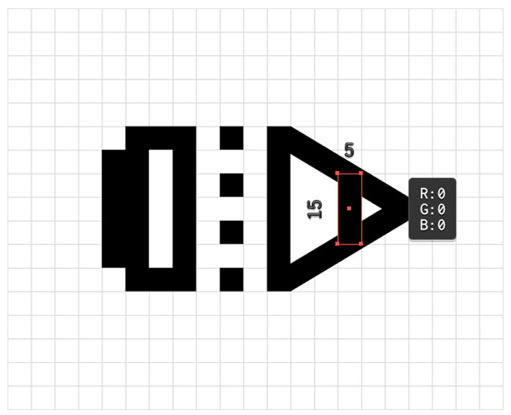 使用矩形工具(M),创建一个5×15像素的形状,如下图所示, 颜色填充为黑色,描边为无。