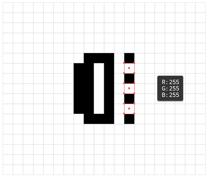 使用矩形工具(M),确保填充颜色为白色,再画三个5像素的正方形,然后将它们如下图摆放。