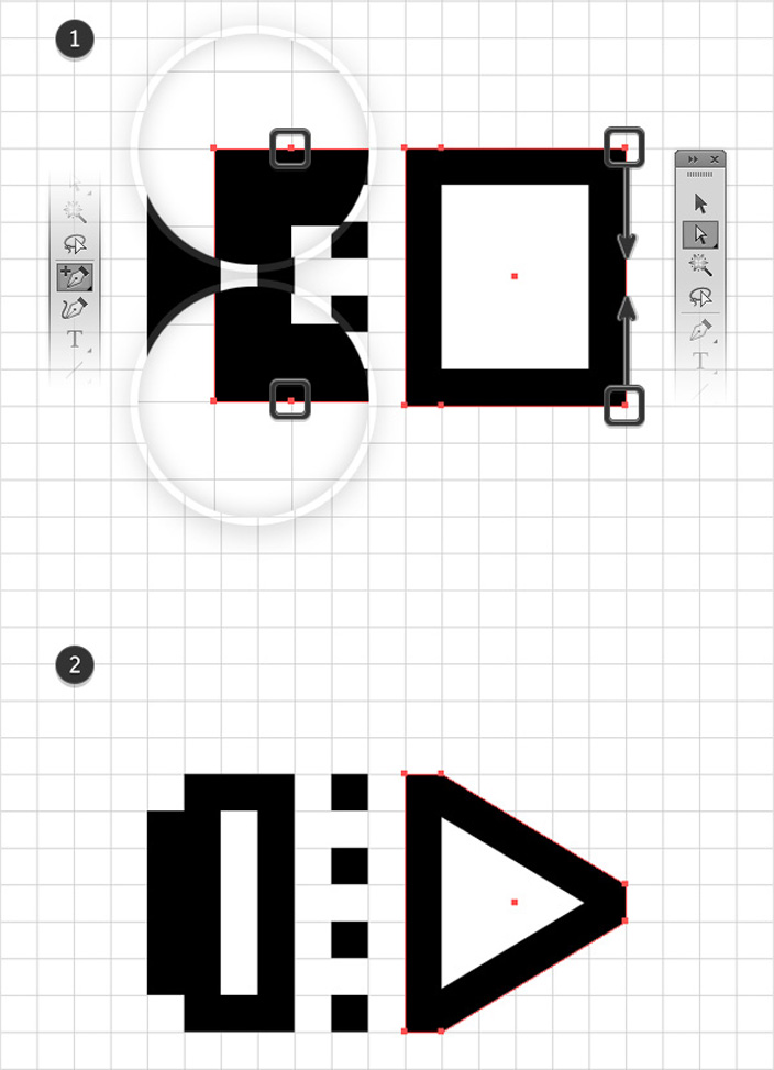 用直接选择工具(A),选中图1选中的锚点并拖动15px,最后的形状如图2所示。